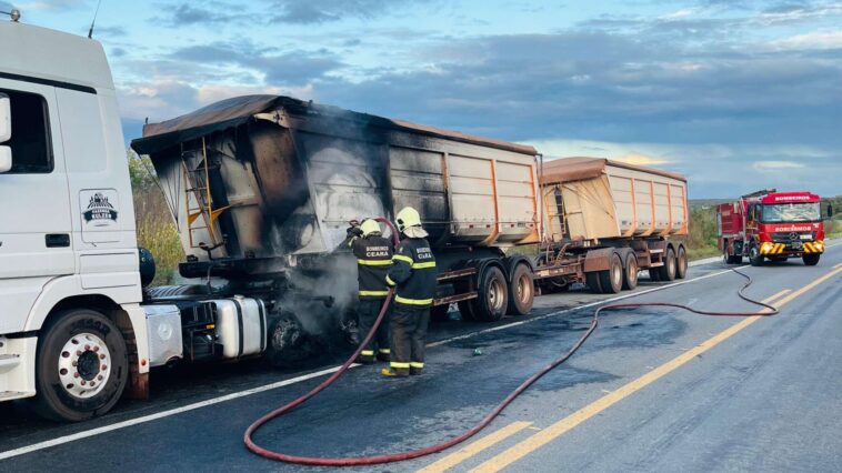 Na madrugada desta quinta-feira (10), o Corpo de Bombeiros de Canindé foi acionado às 5h30 via Ciops para conter um incêndio veicular na BR-020. O chamado informava que o fogo ocorria na altura do km 338, na localidade de Santa Fé.