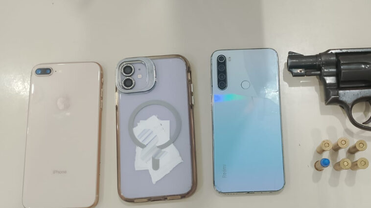 Ele foi localizado em um imóvel da região em posse de um revólver calibre 38, seis munições, além da apreensão de três celulares e uma motocicleta. Na unidade policial, ele foi autuado em flagrante por porte ilegal de arma de fogo e por integrar organização criminosa. As diligências pela região permanecem com a finalidade de prender outros envolvidos em crimes na região.