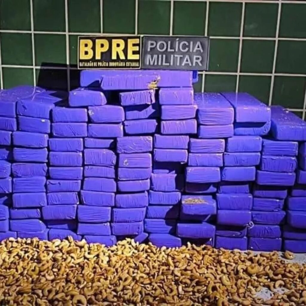 A droga estava escondida dentro de um carro branco e, para tentar disfarçar o cheiro, os suspeitos utilizaram castanhas como cobertura. O veículo vinha de Canindé e foi interceptado após informações repassadas pelo serviço de inteligência policial.