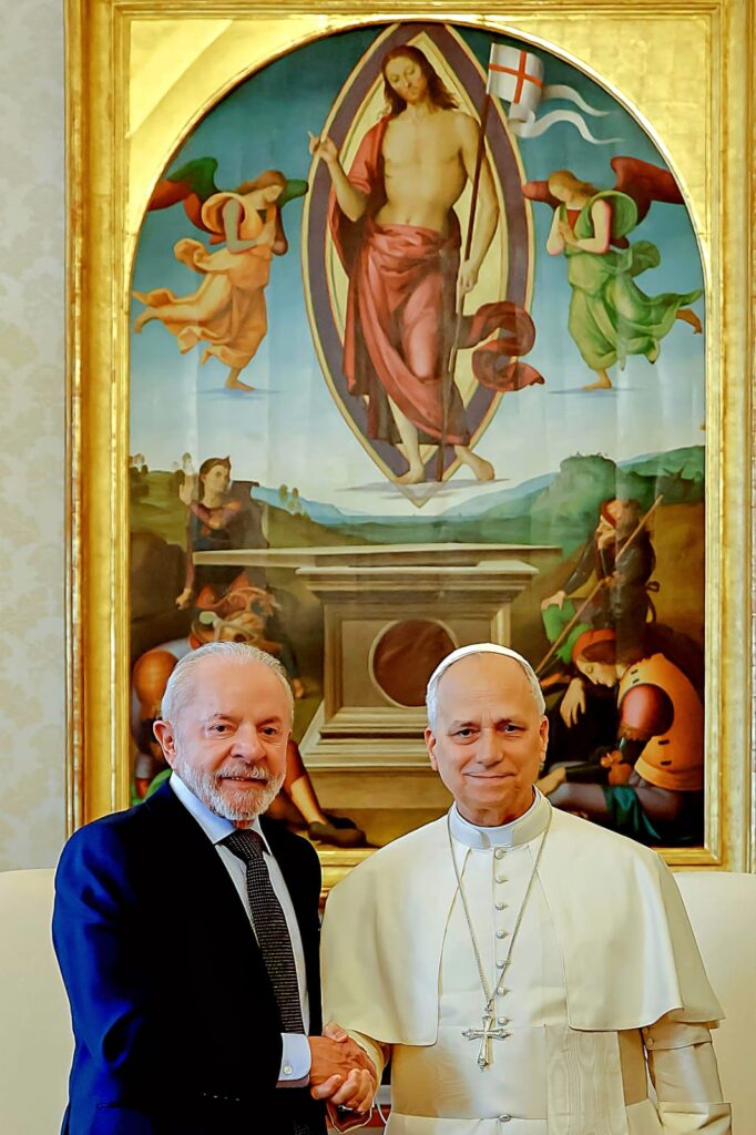O presidente Luiz Inácio Lula da Silva se reuniu nesta segunda-feira (13), no Vaticano, com o papa Leão XIV. Em seu perfil na rede social X, Lula relatou ter conversado com o pontífice sobre “religião, fé, o Brasil e os imensos desafios que temos que enfrentar no mundo”.